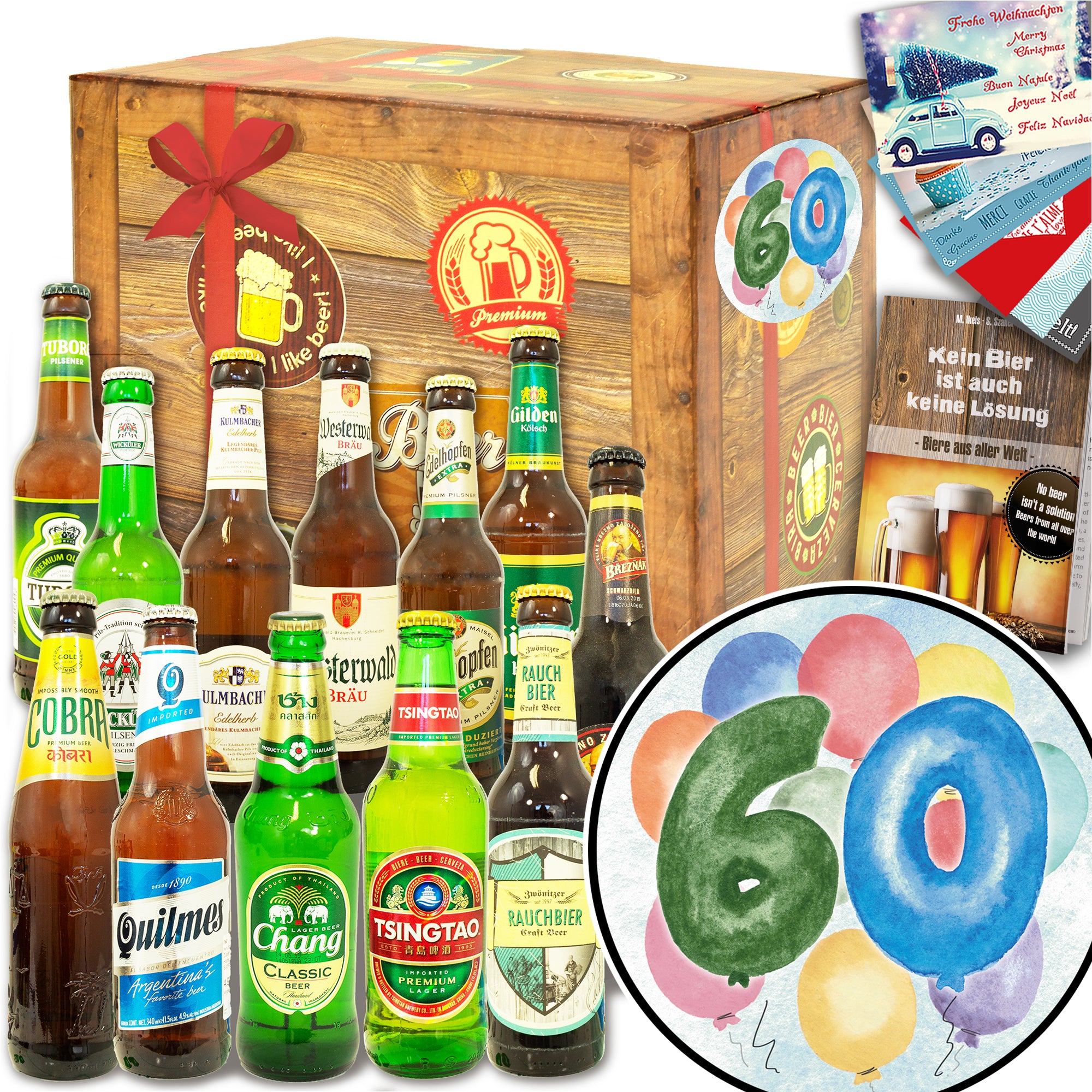 60. Geburtstag | 12 Flaschen Bier International und DE | Geschenk Box