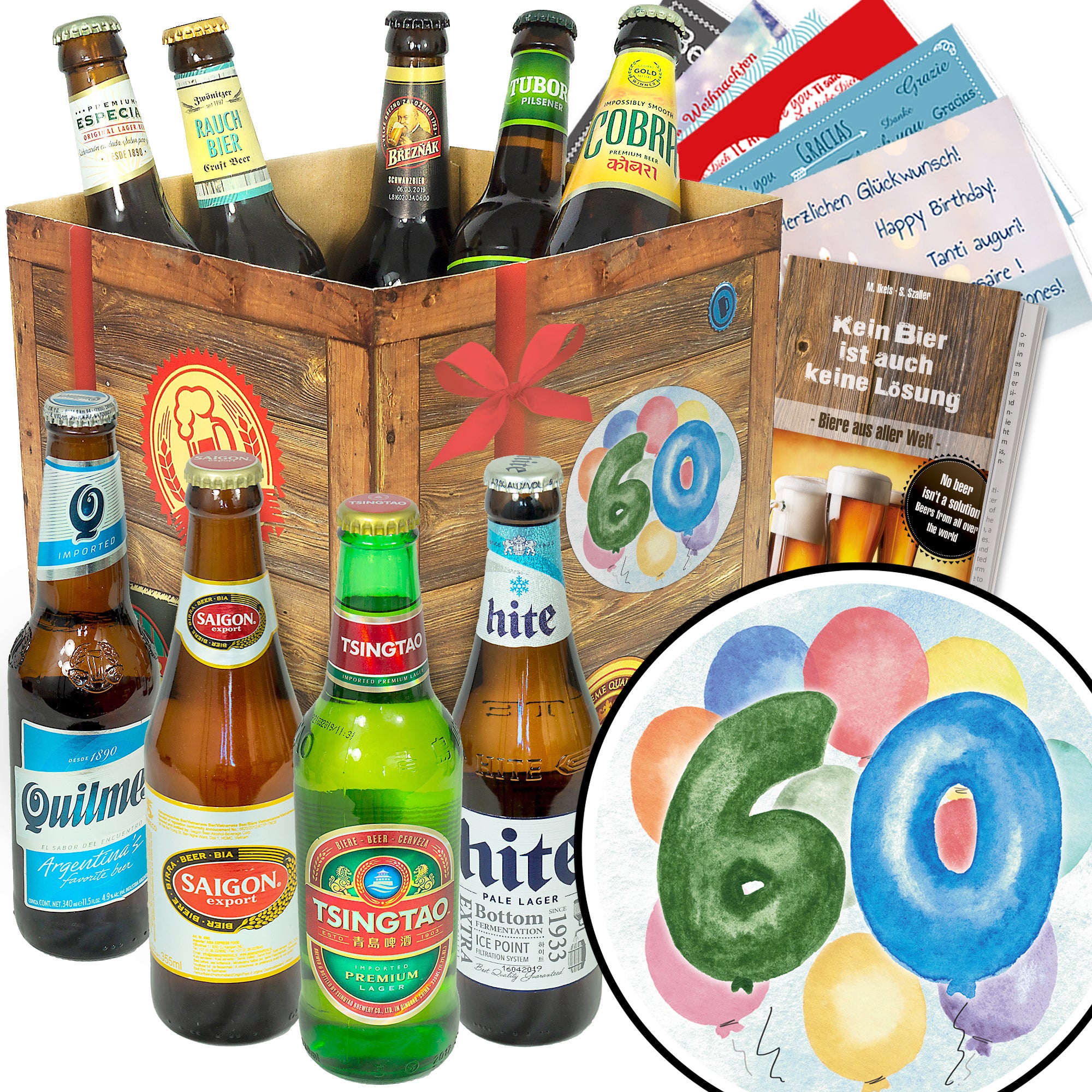 60. Geburtstag | 9 Flaschen Bier aus aller Welt | Geschenk Box