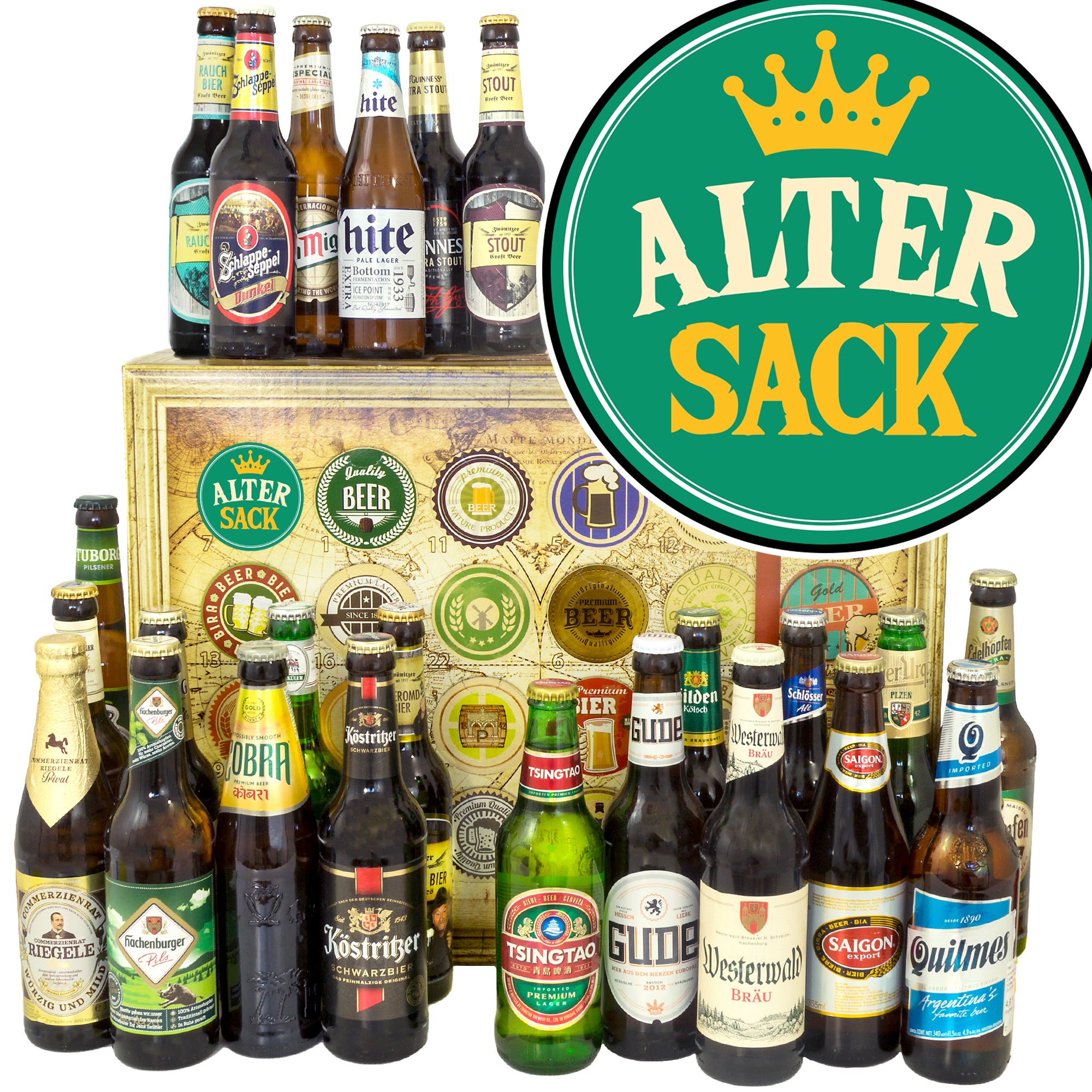 Alter Sack | 24 Flaschen Bier International und Deutschland | Geschenkbox