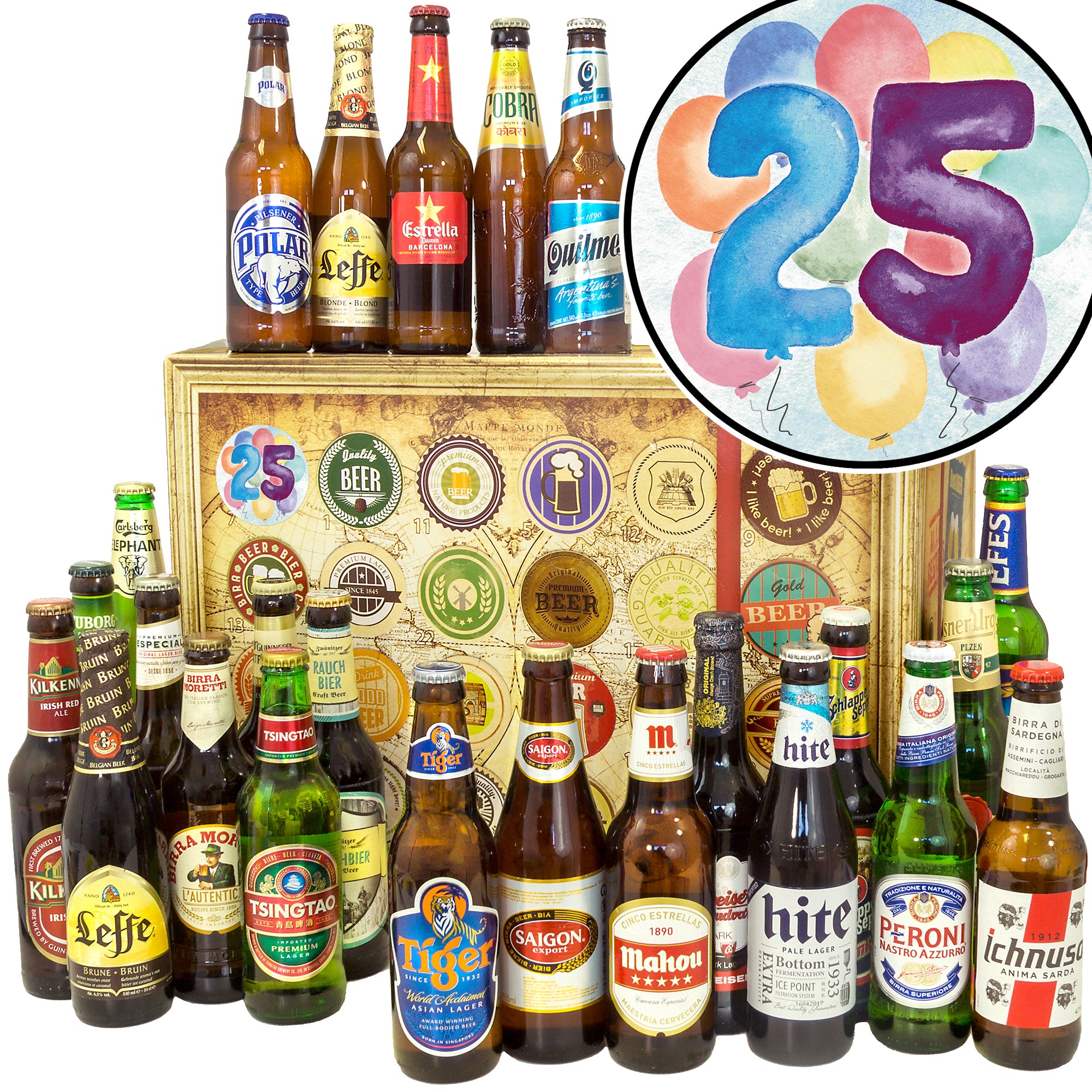 Geburtstag 25 | 24 Flaschen Biere der Welt Exoten | Geschenk Set