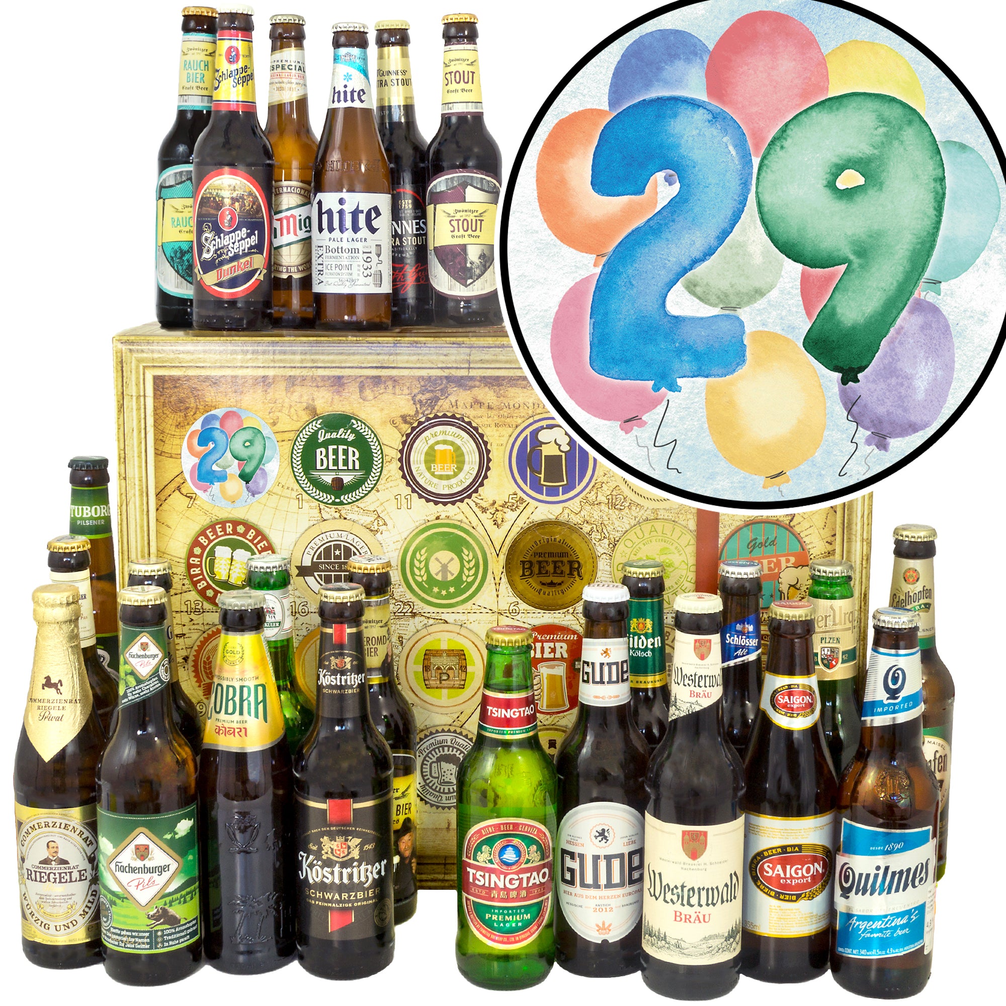 Geburtstag 29 | 24x Biere Welt und Deutschland | Biergeschenk