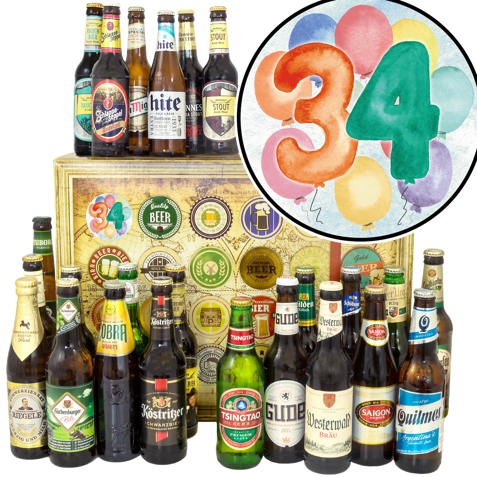 Geburtstag 34 | 24 Flaschen Biere Welt und Deutschland | Präsent