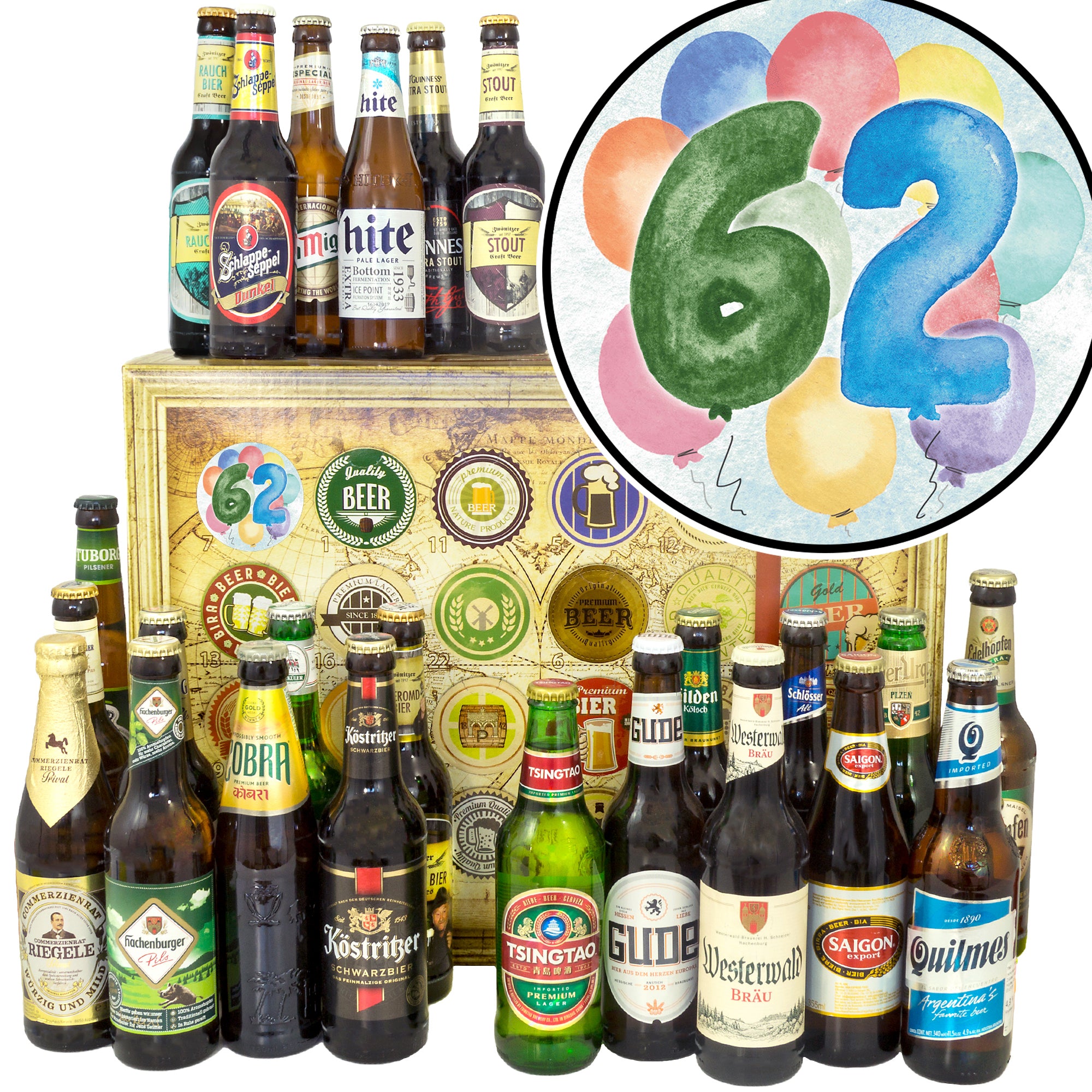 Geburtstag 62 | 24 Flaschen Bier aus Welt und Deutschland | Geschenk Box