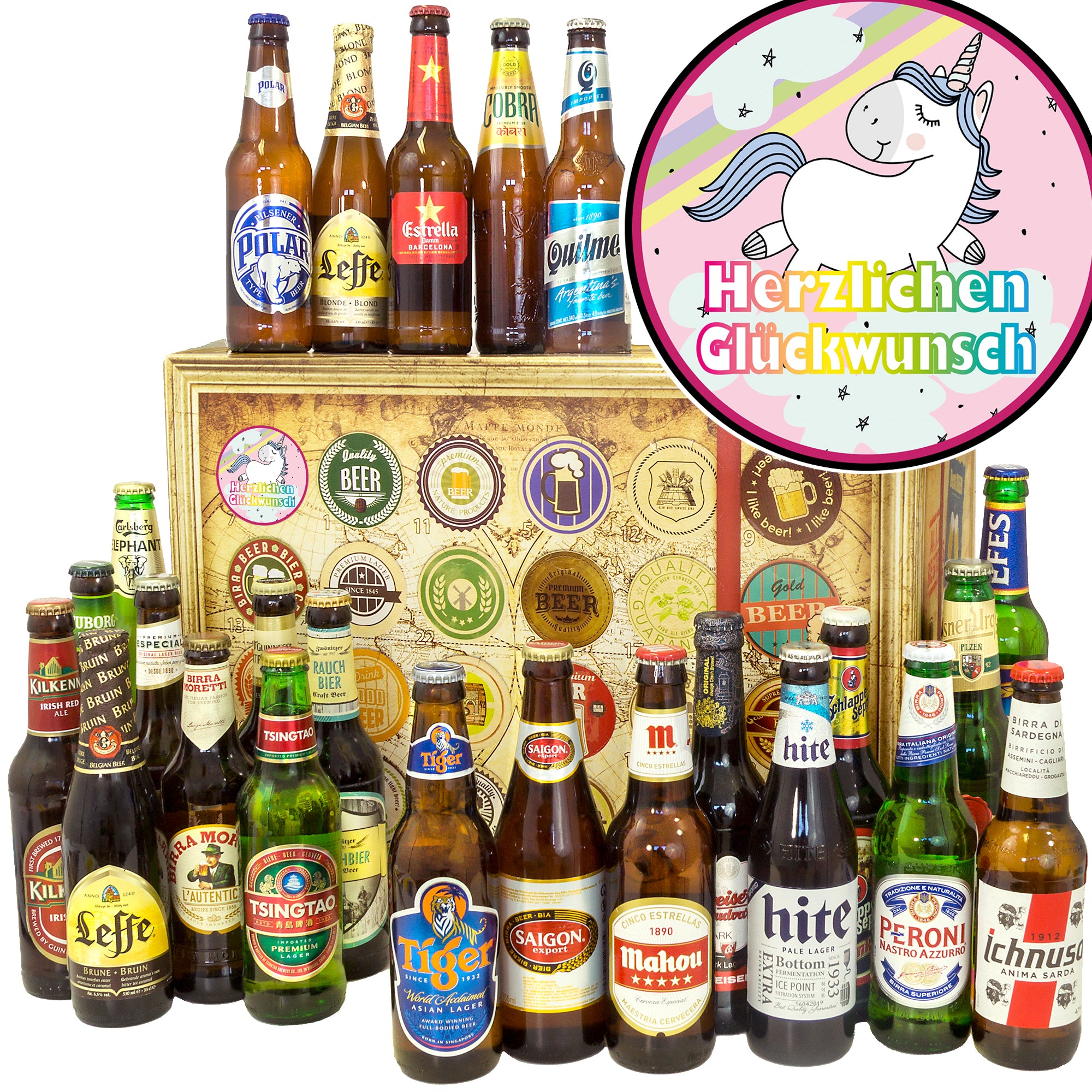 Herzlichen Glückwunsch Einhorn | 24 Biersorten Bier International | Geschenkidee