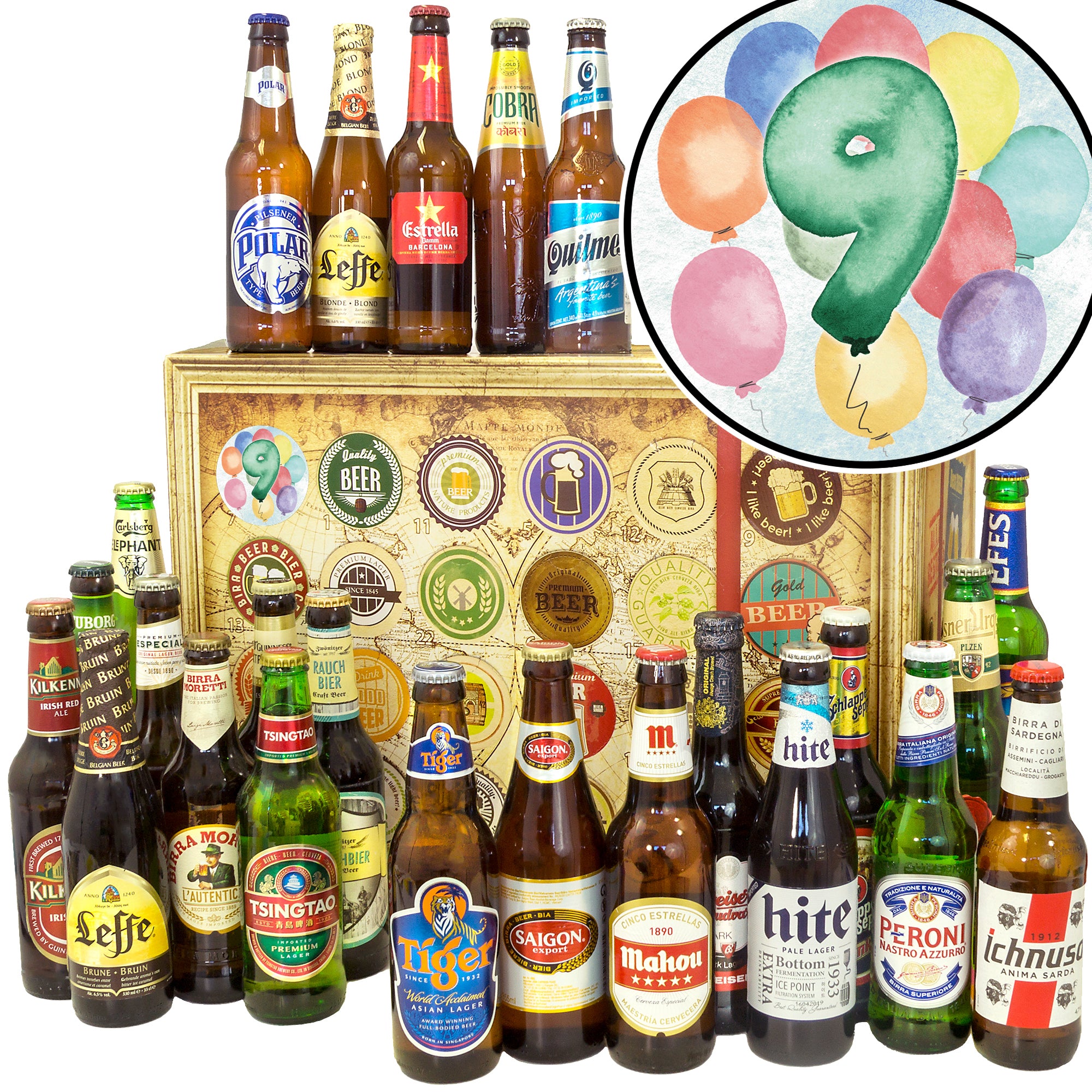 Jubiläum 9 | 24 Biersorten Bier Weltreise | Geschenk Box