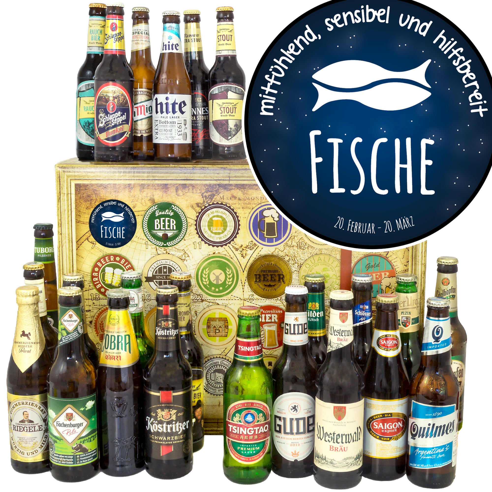 Sternzeichen Fische | 24 Flaschen Bier International und Deutschland | Biergeschenk