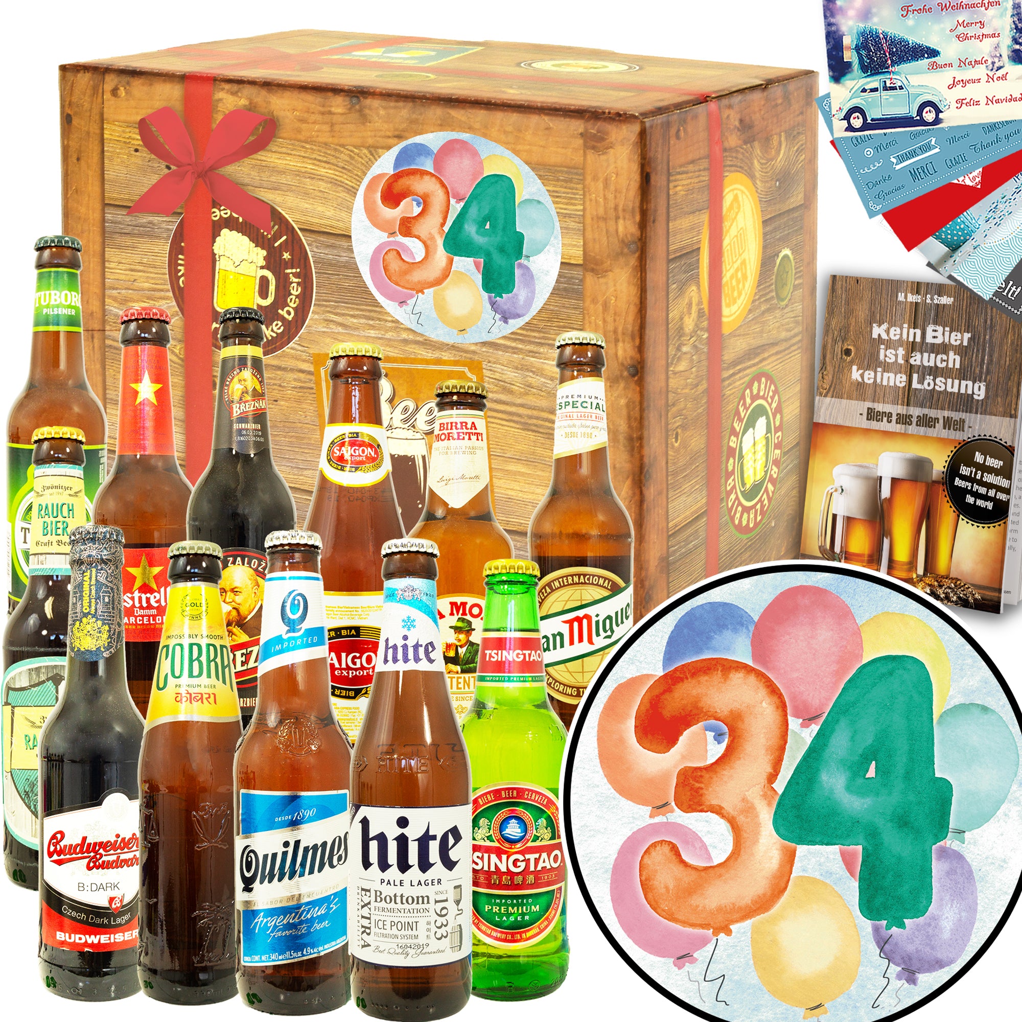 Geburtstag 34 | 12 Flaschen Bier Weltreise | Biergeschenk