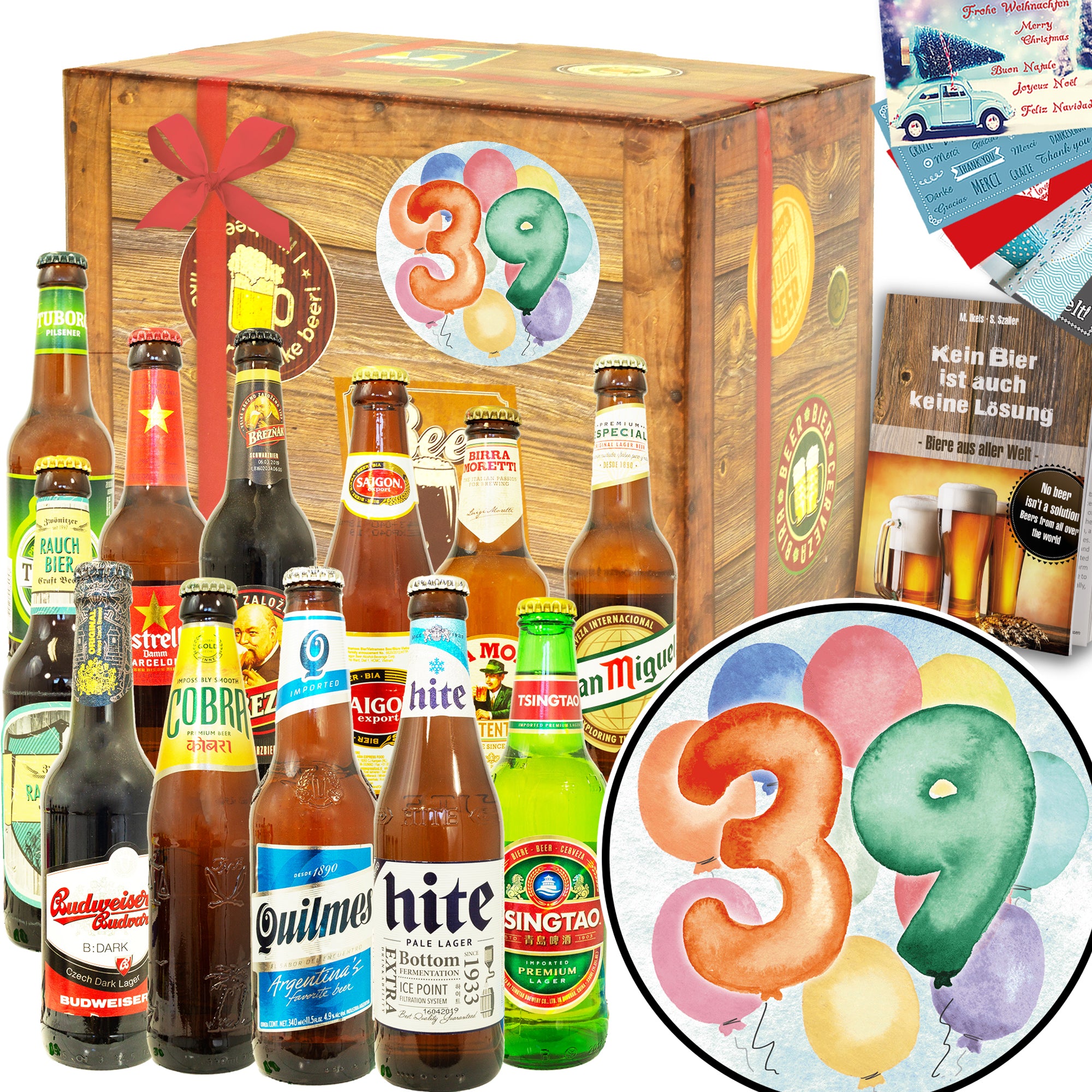 Geburtstag 39 | 12 Flaschen Biere der Welt Exoten | Geschenk Box