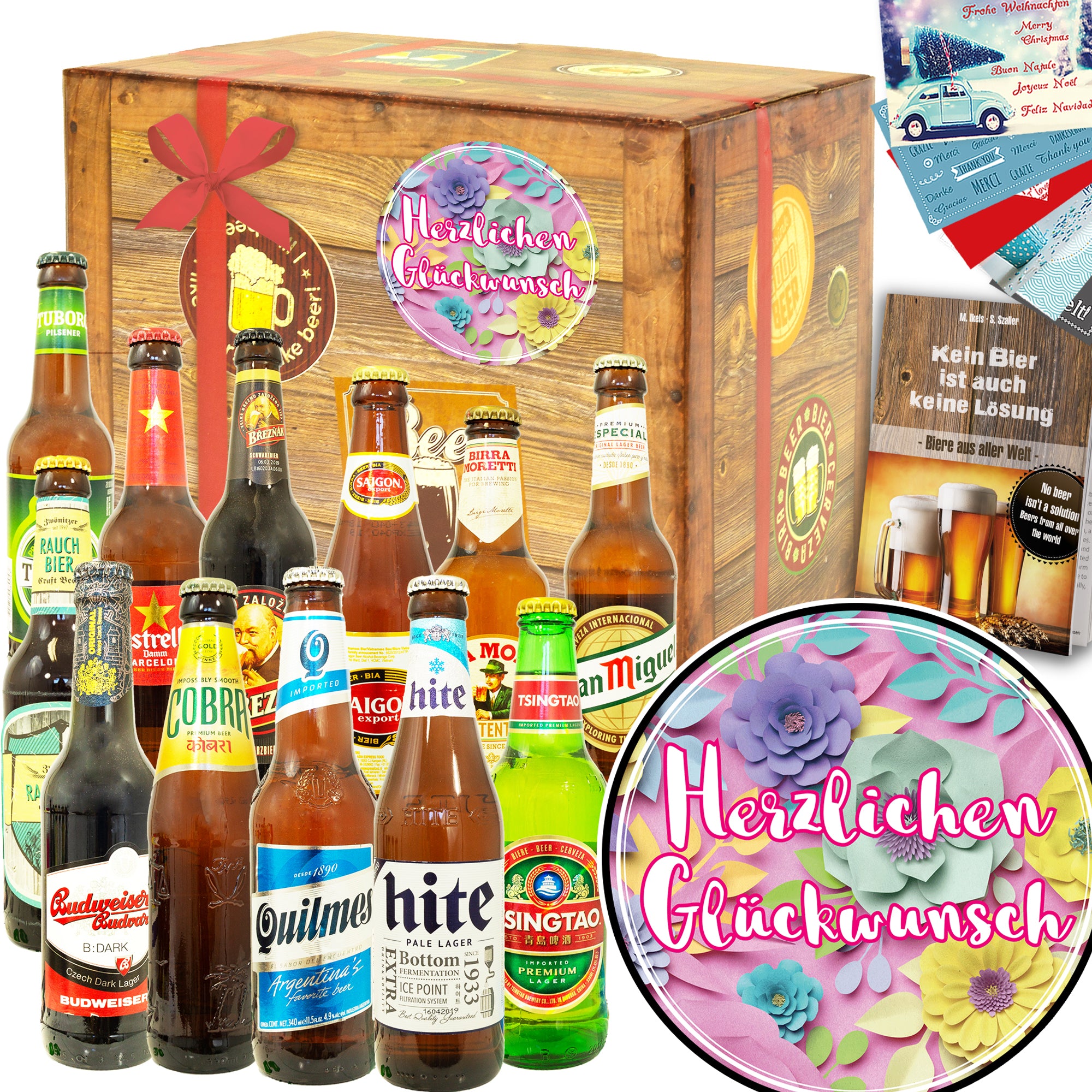 Herzlichen Glückwunsch Blumen | 12 Länder Bierweltreise | Geschenk Set