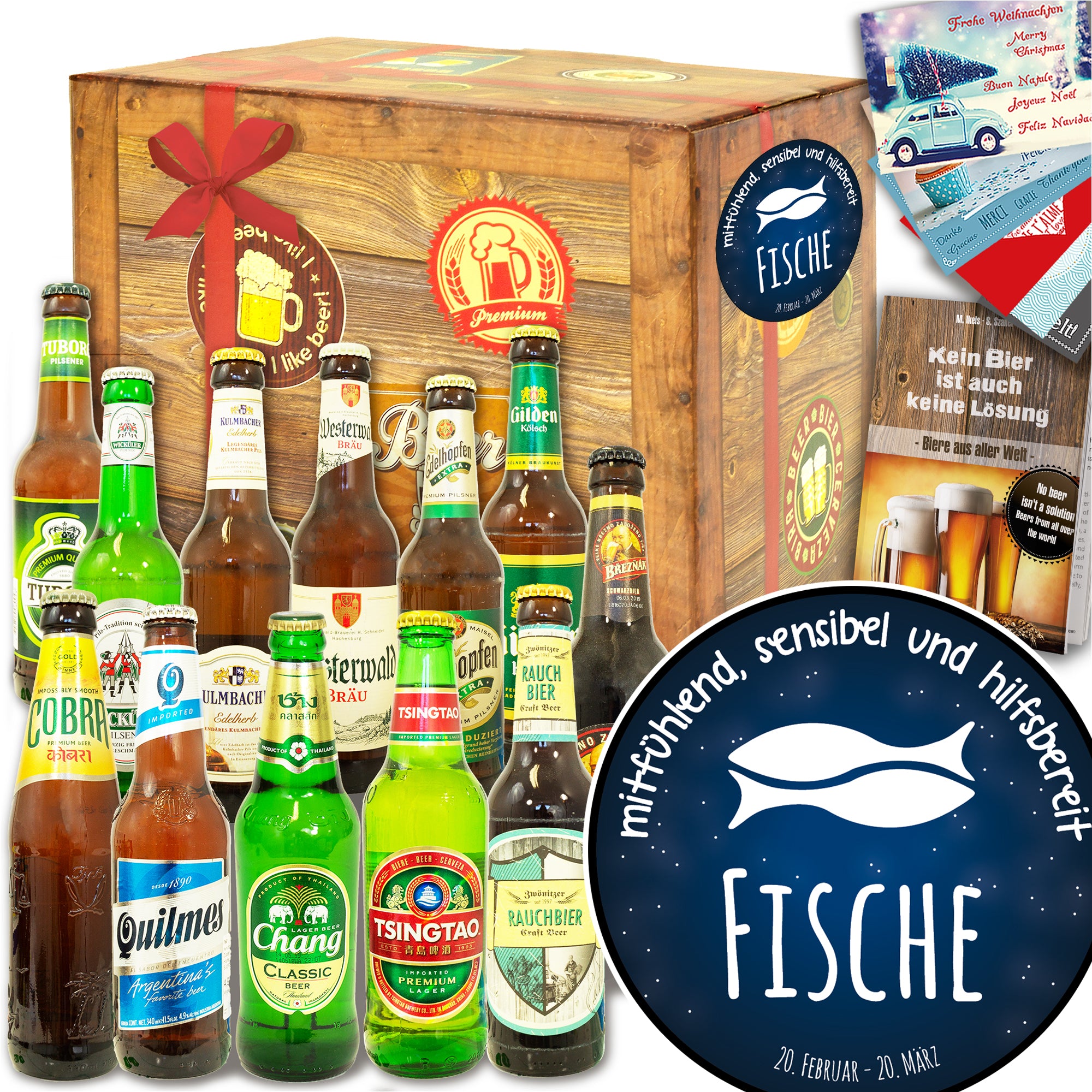 Sternzeichen Fische | 12 Flaschen Bier aus der Welt und Deutschland | Geschenkpaket