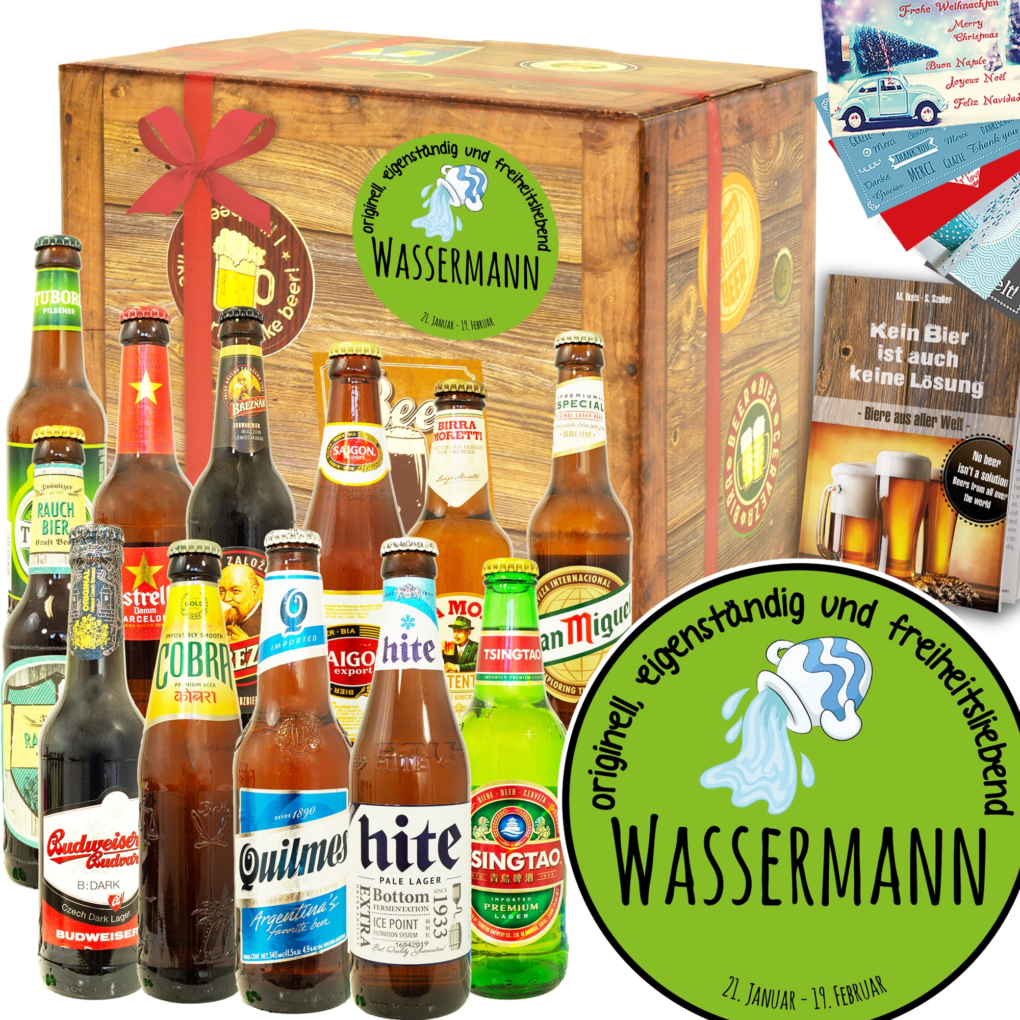 Sternzeichen Wassermann | 12 Flaschen Bier Weltreise | Geschenkbox