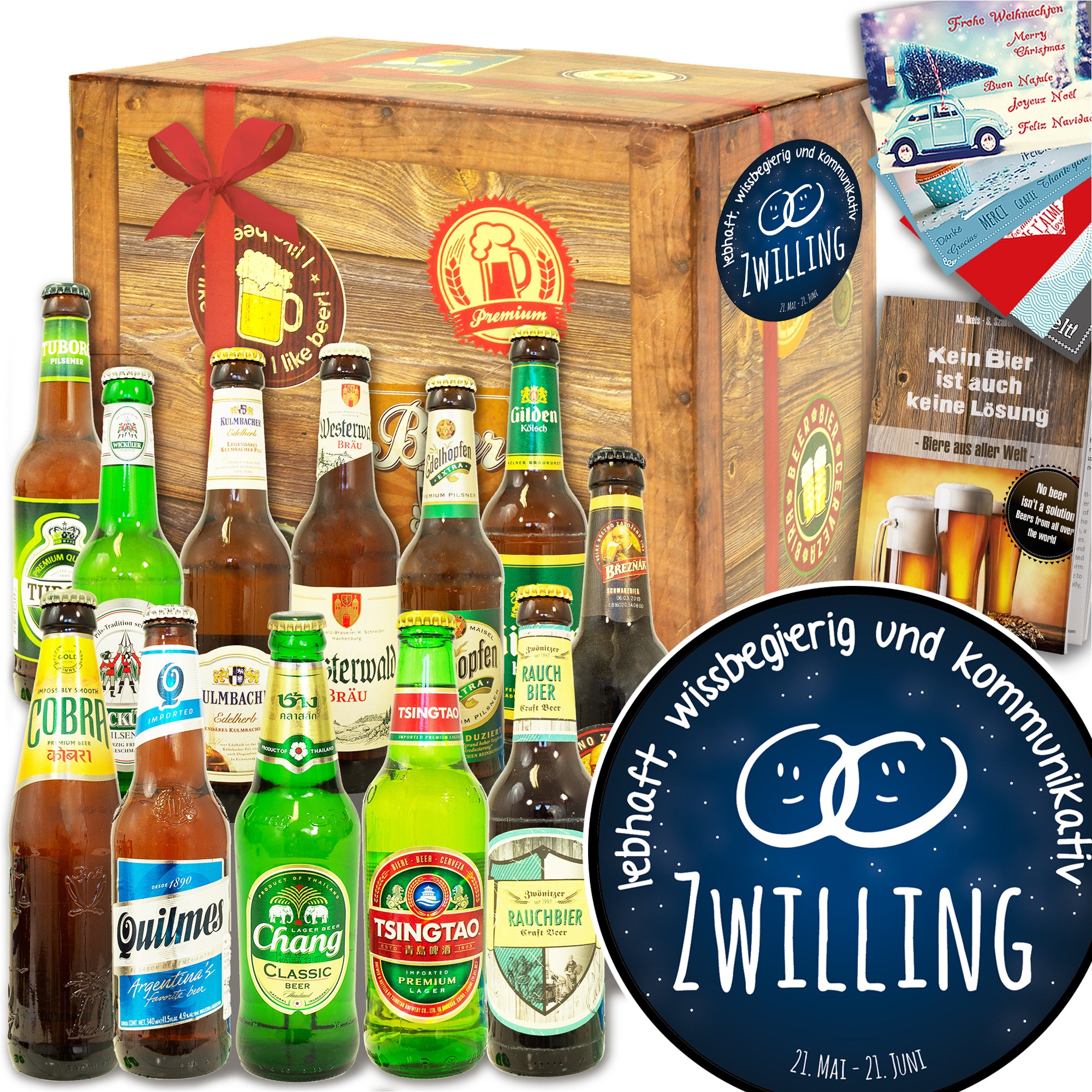 Sternzeichen Zwilling | 12 Flaschen Bier International und DE | Bierverkostung