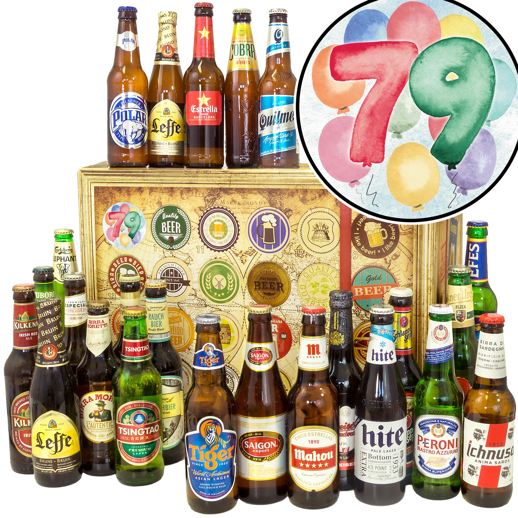 Geburtstag 79 | 24 Flaschen Biere aus aller Welt | Bier Geschenk