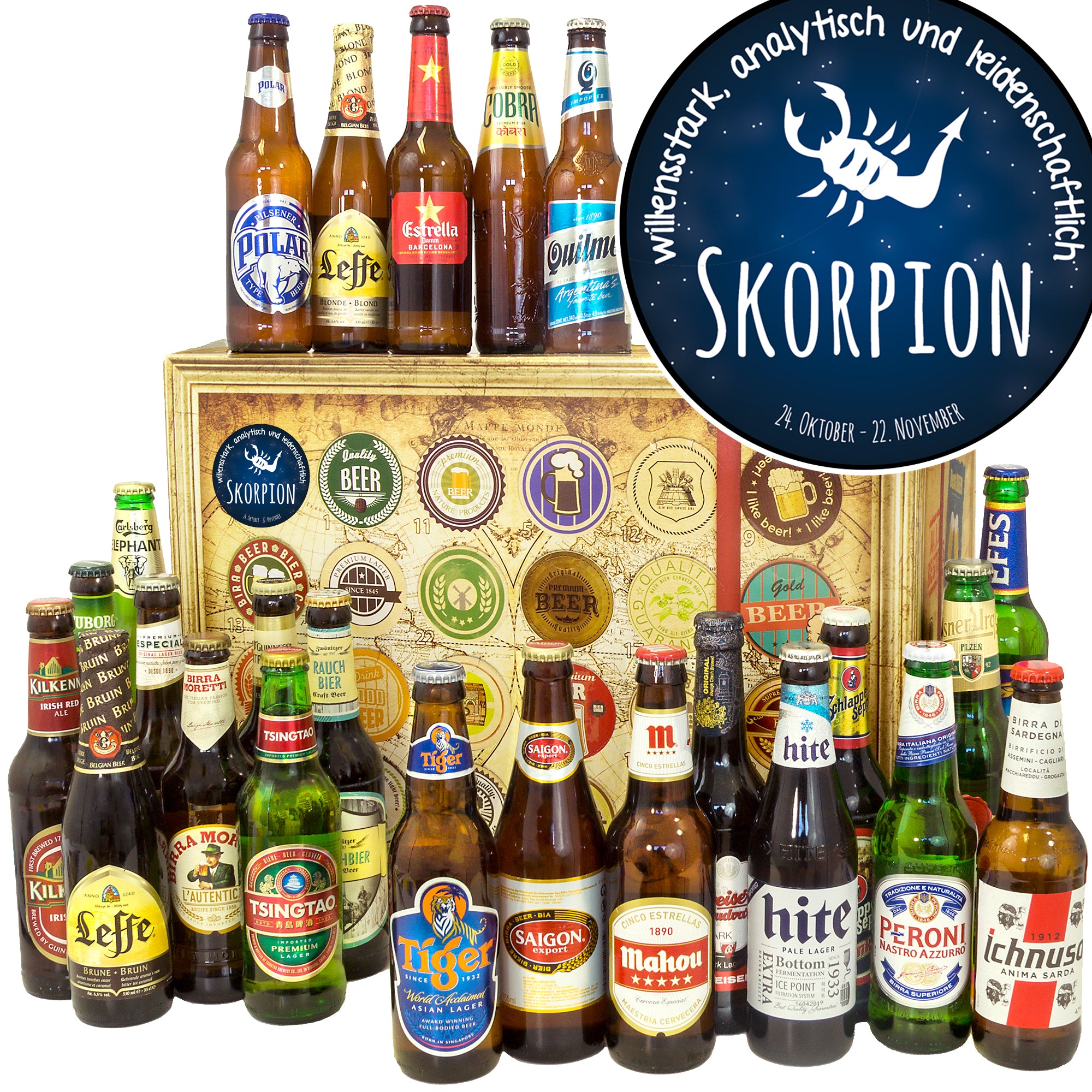 Sternzeichen Skorpion | 24 Flaschen Biere der Welt Exoten | Geschenkidee