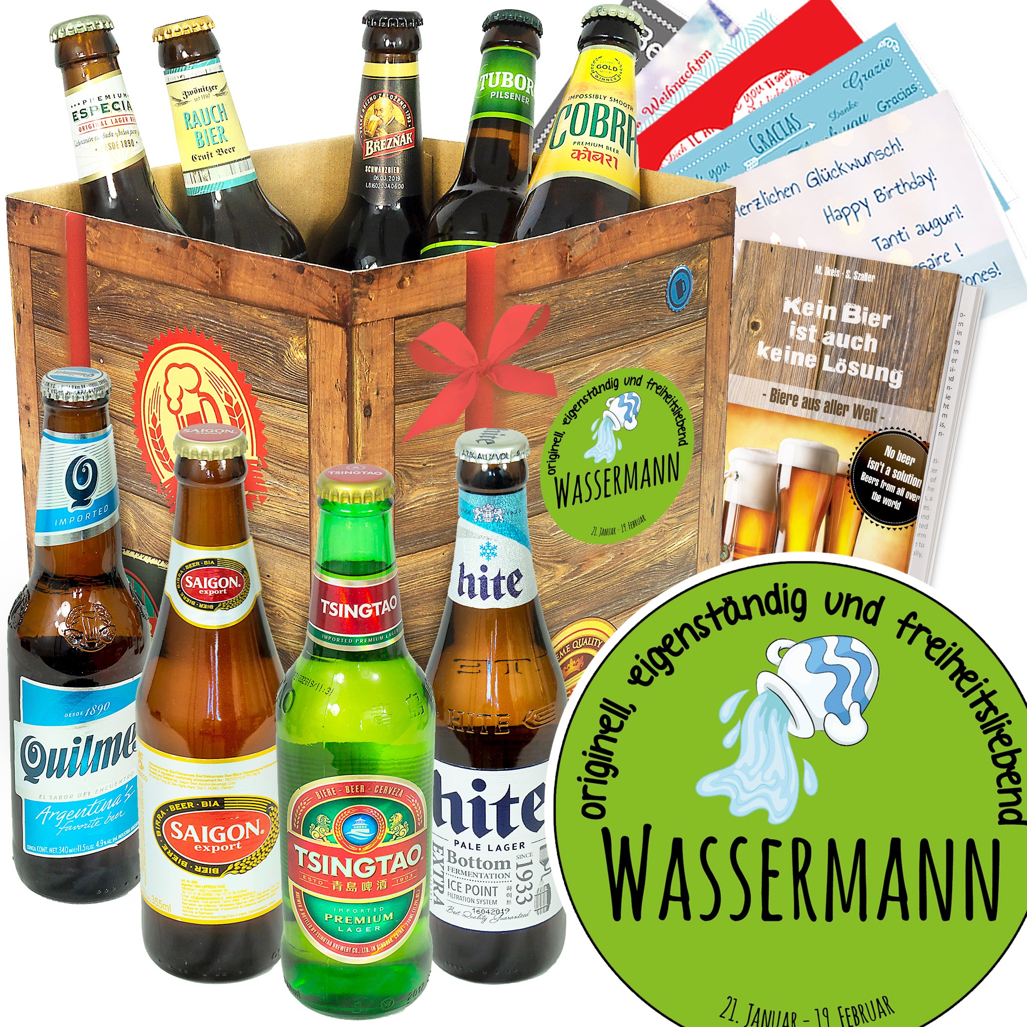 Sternzeichen Wassermann | 9 Flaschen Bier Weltreise | Geschenkbox