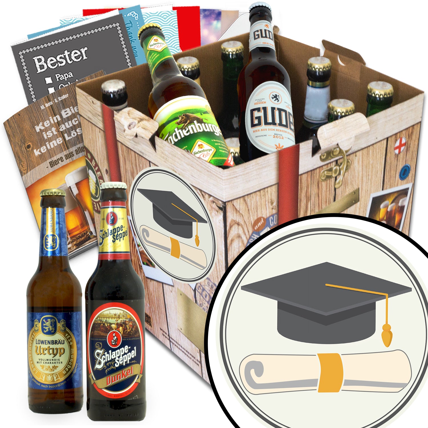 Sie erhalten: 9x deutsche Biere renommierter Brauereien aus ganz Deutschland + Geschenkkarton in edler Holzoptik (wiederverschließbar) + 6 Geschenkkarten + Bierbewertungsbogen + Gratis Bierbuch (A6, 104 Seiten, im Wert von €5,95) mit Vorstellung der bestellten Biere sowie weiterer internationaler Sorten. Dazu jede Menge interessante Infos im Bierbuch: Wie wird Bier hergestellt? Welches Glas für welche Sorte Bier? Wie prostet man in anderen Ländern? Dazu beliebte Bierspiel-Anleitungen. Außerdem ausgefallene Bier-Geschenk-Tipps - Wie wäre es z.B. mit einer Übernachtung im Bierfass?