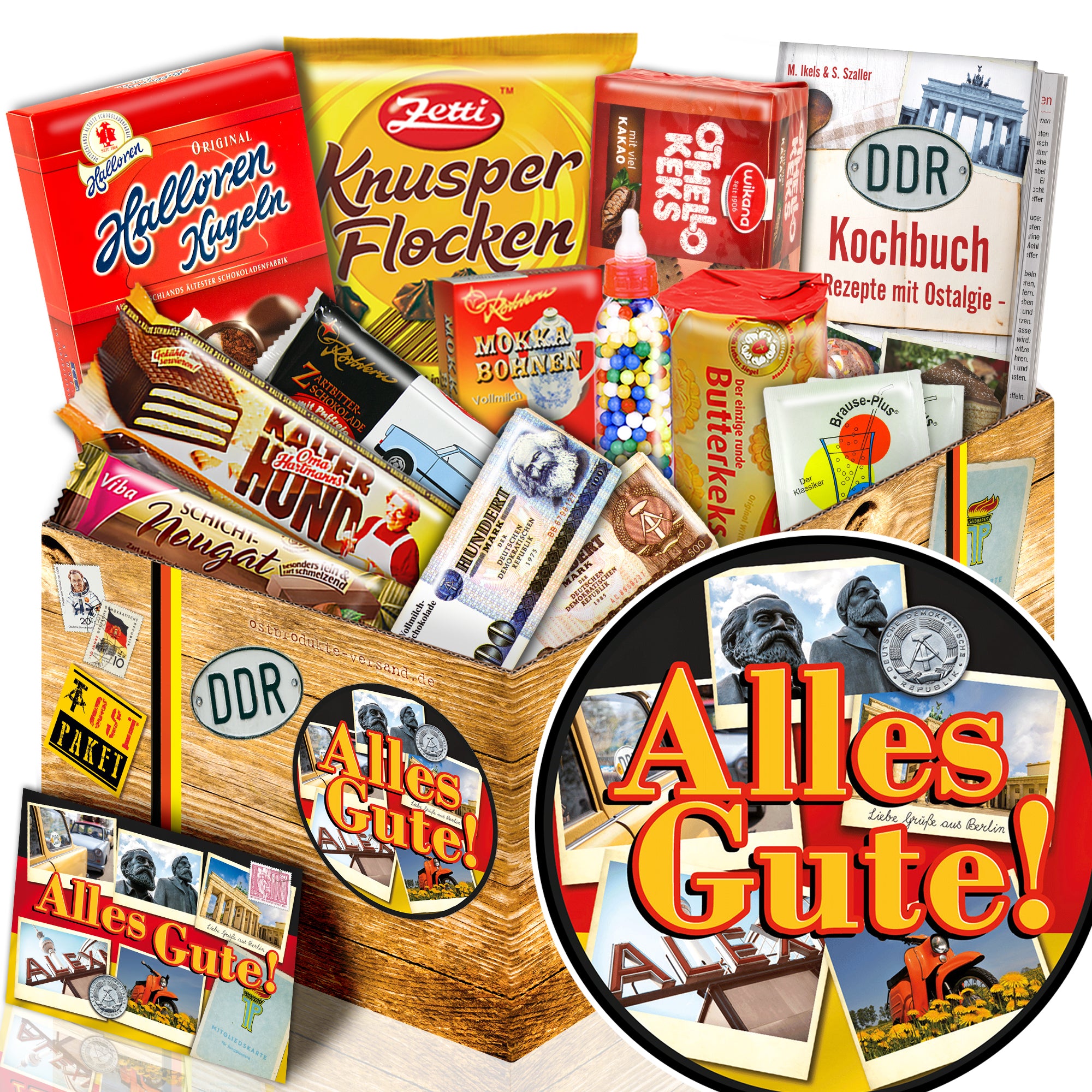 Hier erhalten Sie das Ostpaket "DDR Süßigkeiten BOX" mit 12 verschiedenen Produkten.
