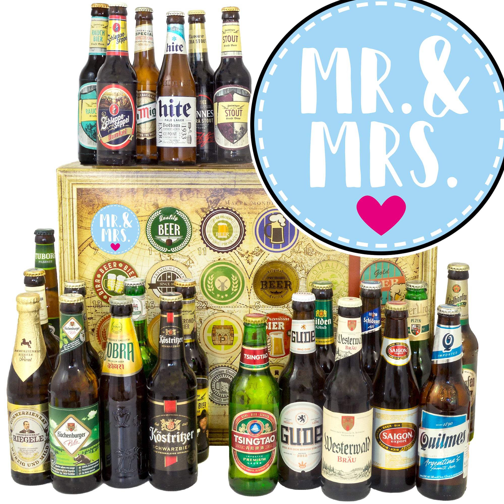 Mr.& Mrs. | 24 Flaschen Bier aus Welt und Deutschland | Geschenkkorb