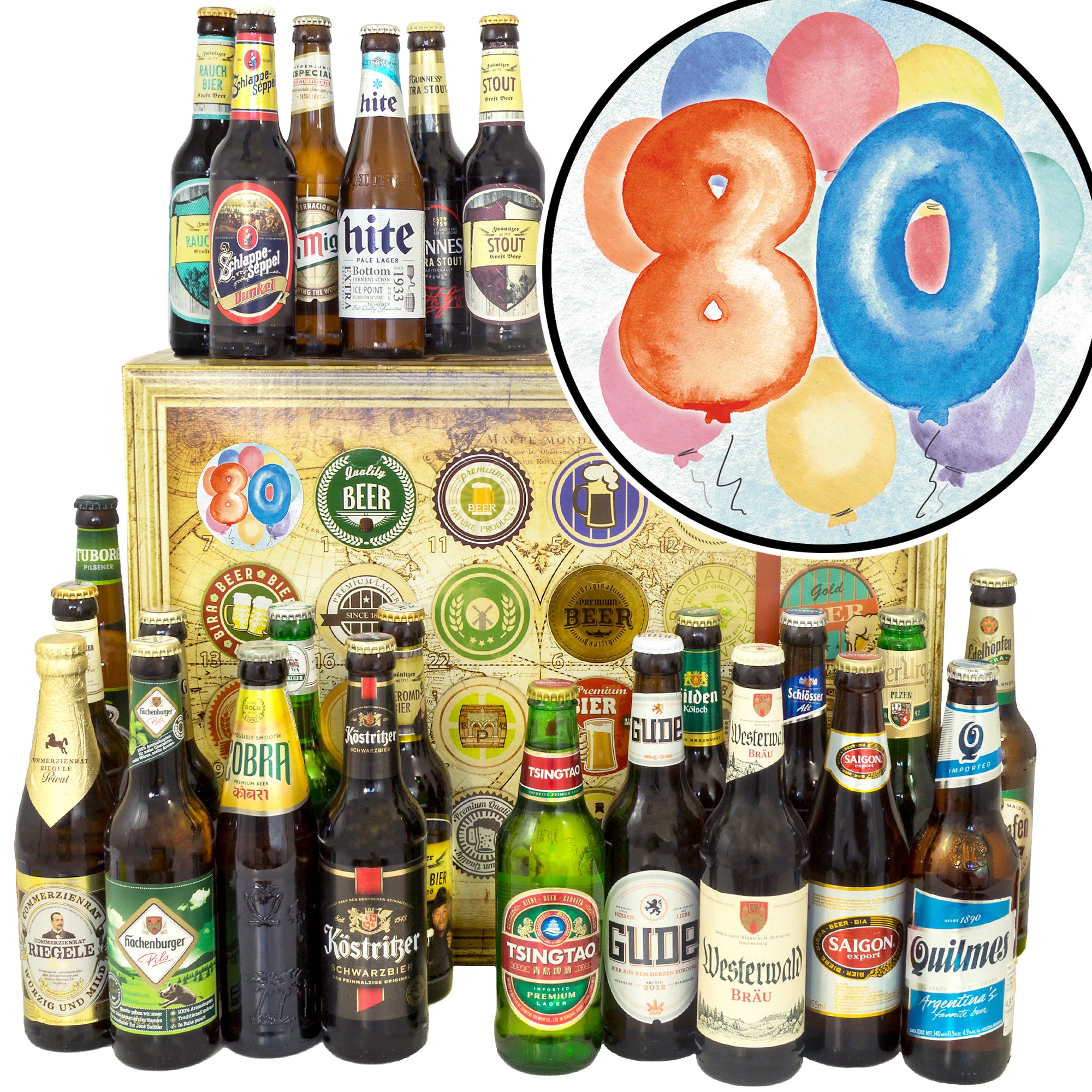 Geburtstag 80 | 24x Bier Biere Welt und Deutschland | Geschenk Box