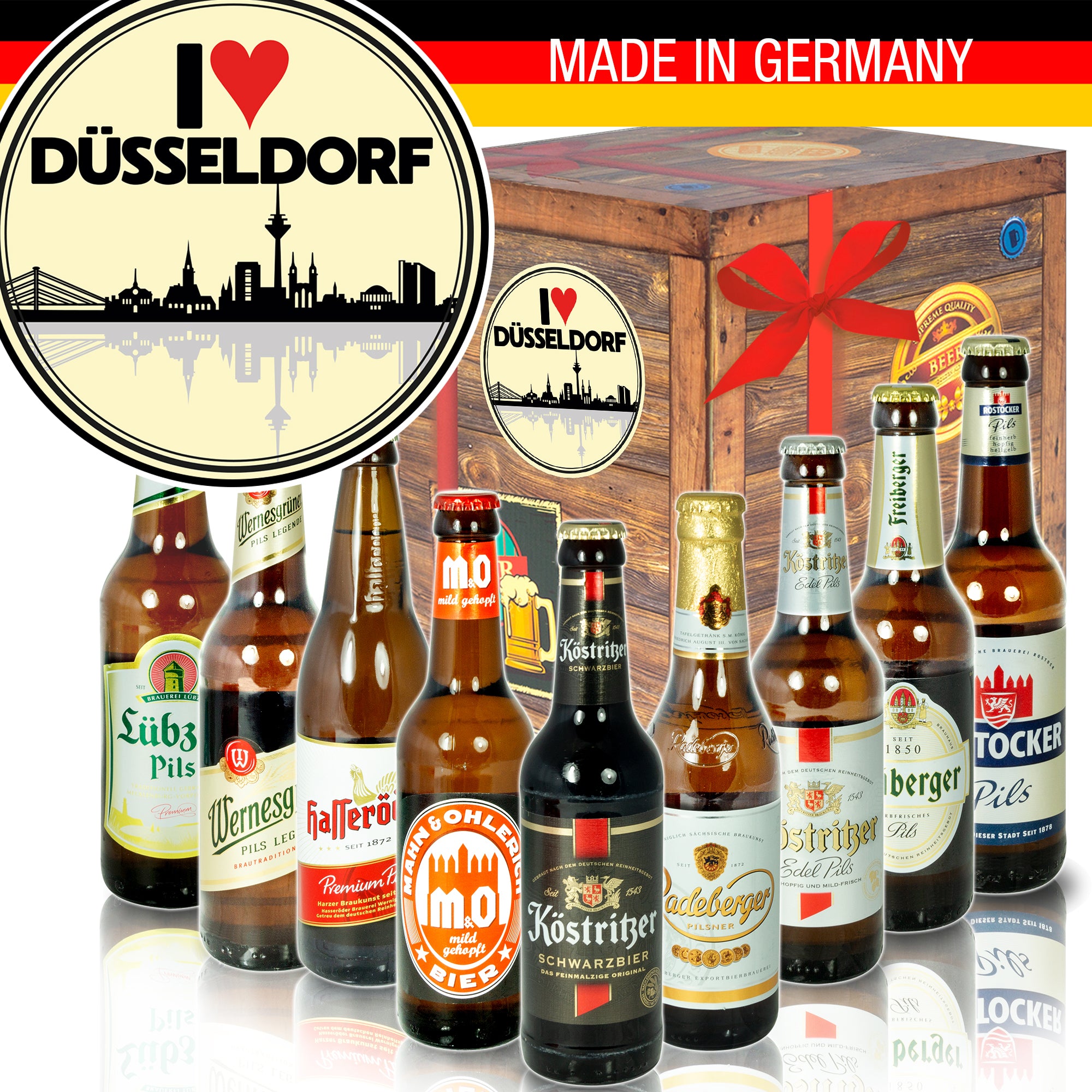I love Düsseldorf | 9 Flaschen Biere Ostdeutsch | Geschenk Set