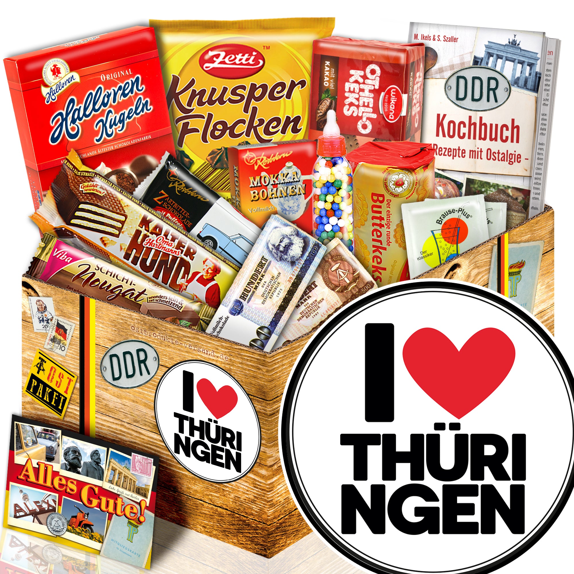 Hier erhalten Sie das Ostpaket "DDR Süßigkeiten BOX" mit 12 verschiedenen Produkten.