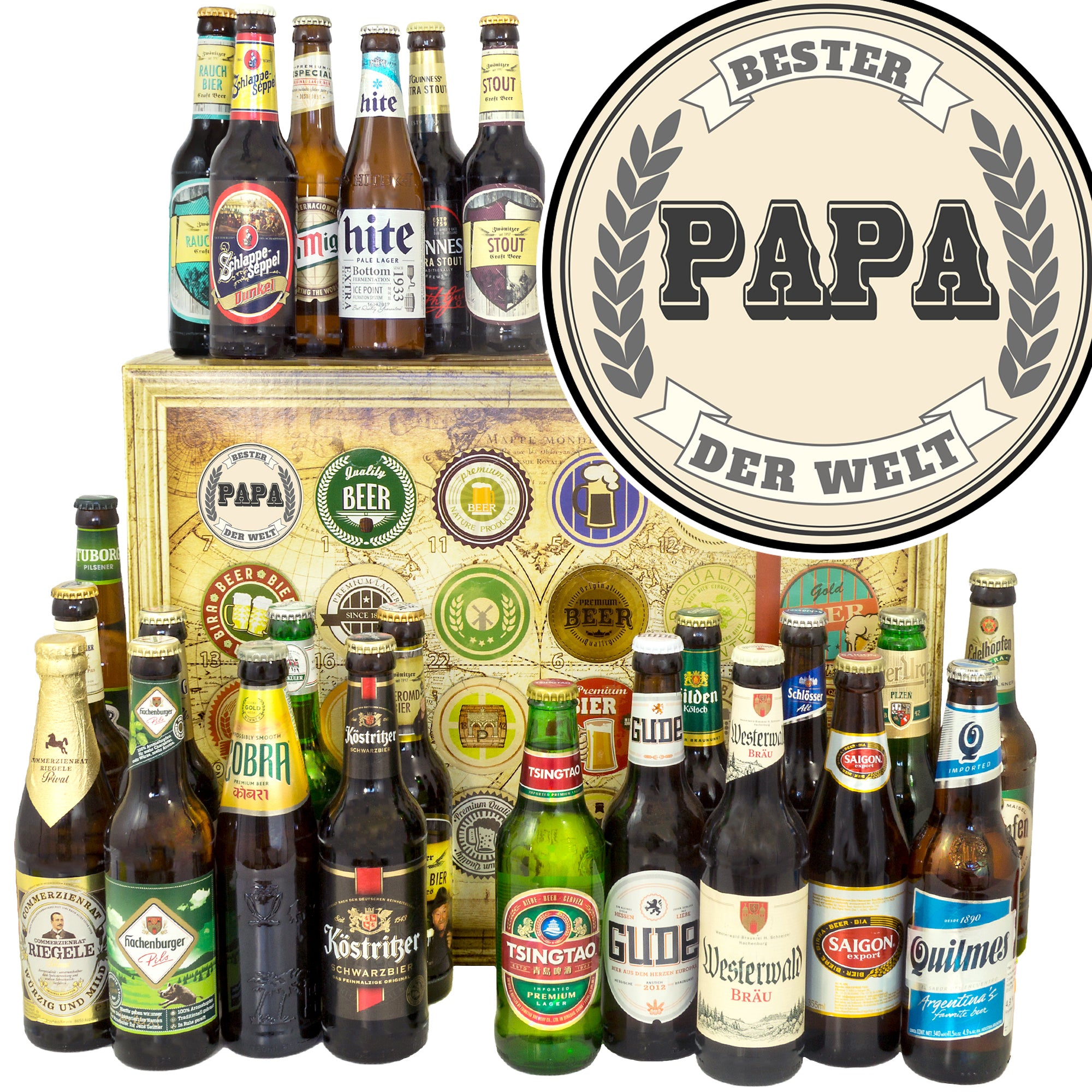 Bester Papa der Welt | 24x Bier Bier International und Deutschland | Geschenkkorb