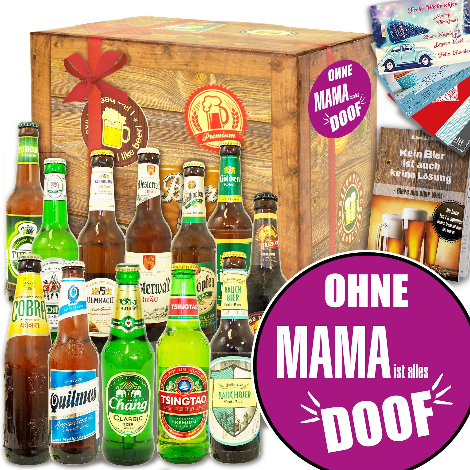 Ohne Mama ist alles doof | 12 Biersorten Bier International und DE | Geschenkbox