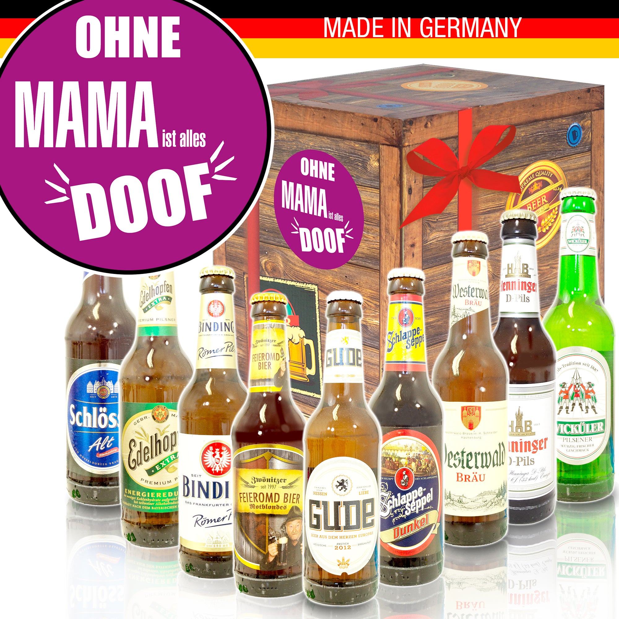 Ohne Mama ist alles doof | 9 Flaschen Deutsche Biere | Biergeschenk