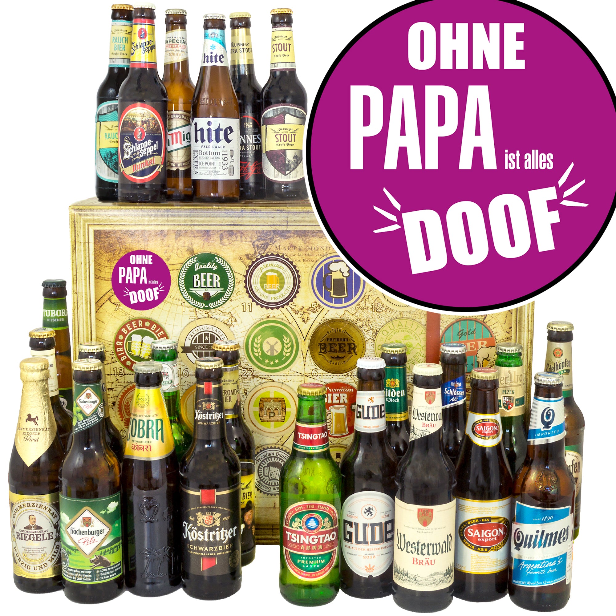 Ohne Papa ist alles doof | 24 Flaschen Biere Welt und Deutschland | Bierpaket