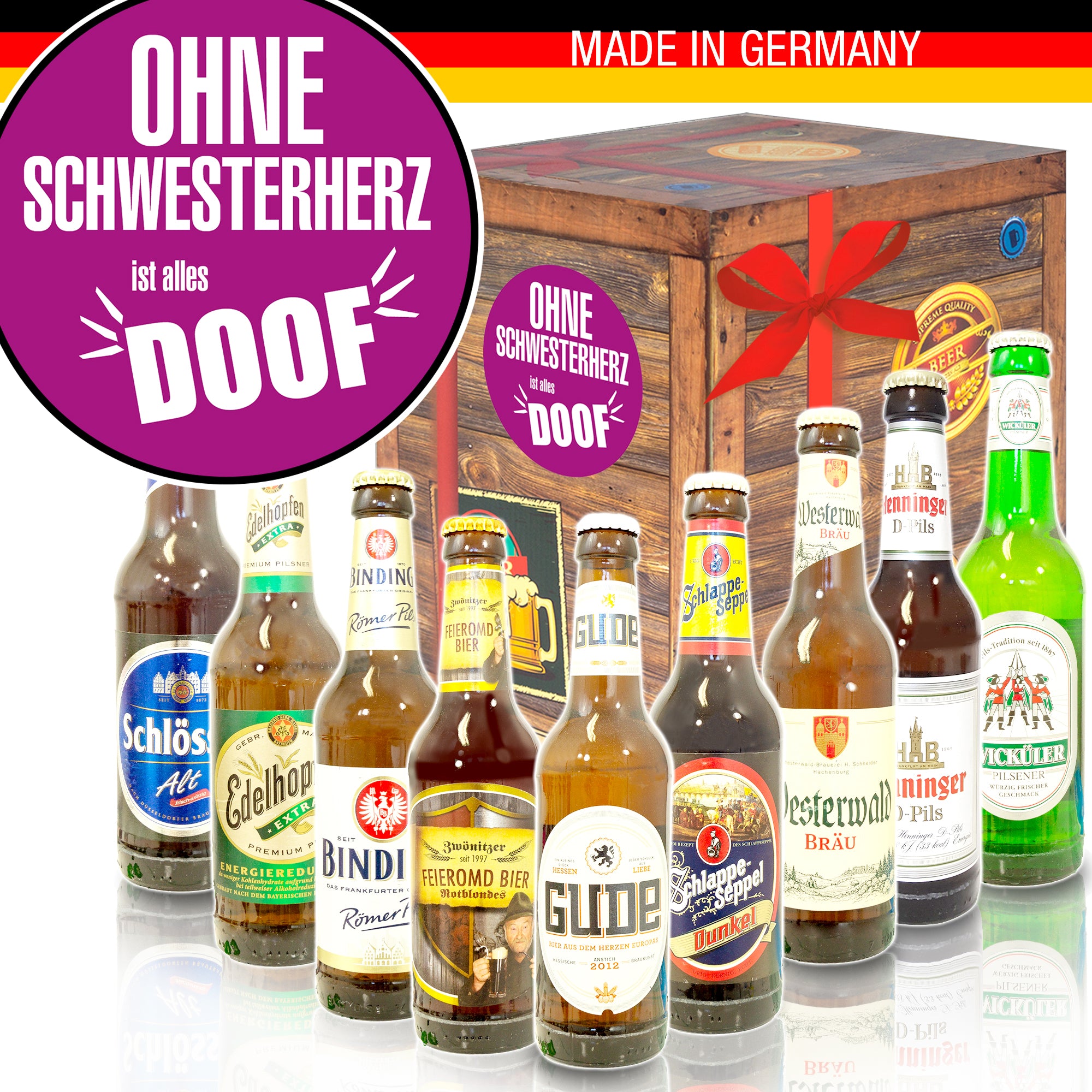 Ohne Schwesterherz ist alles doof | 9 Biersorten Deutsche Biere | Geschenk Set