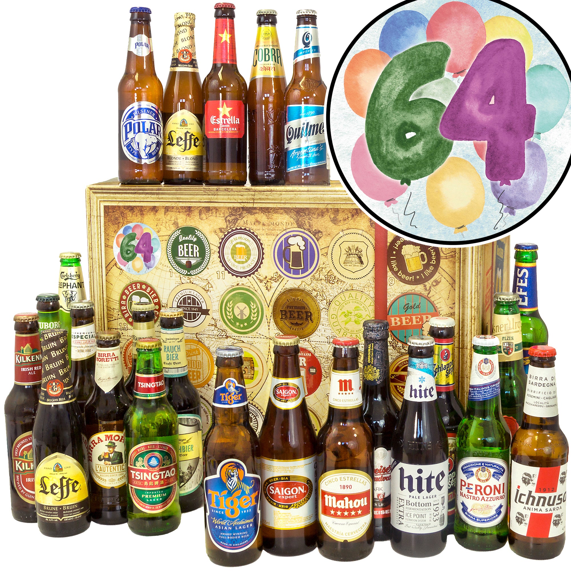 Geburtstag 64 | 24 Flaschen Biere der Welt Exoten | Geschenk Box