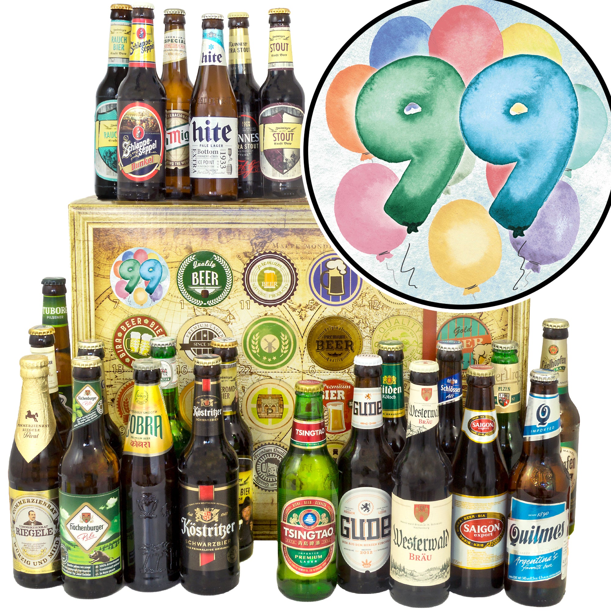 Geburtstag 99 | 24 Spezialitäten Biere Welt und Deutschland | Probierpaket