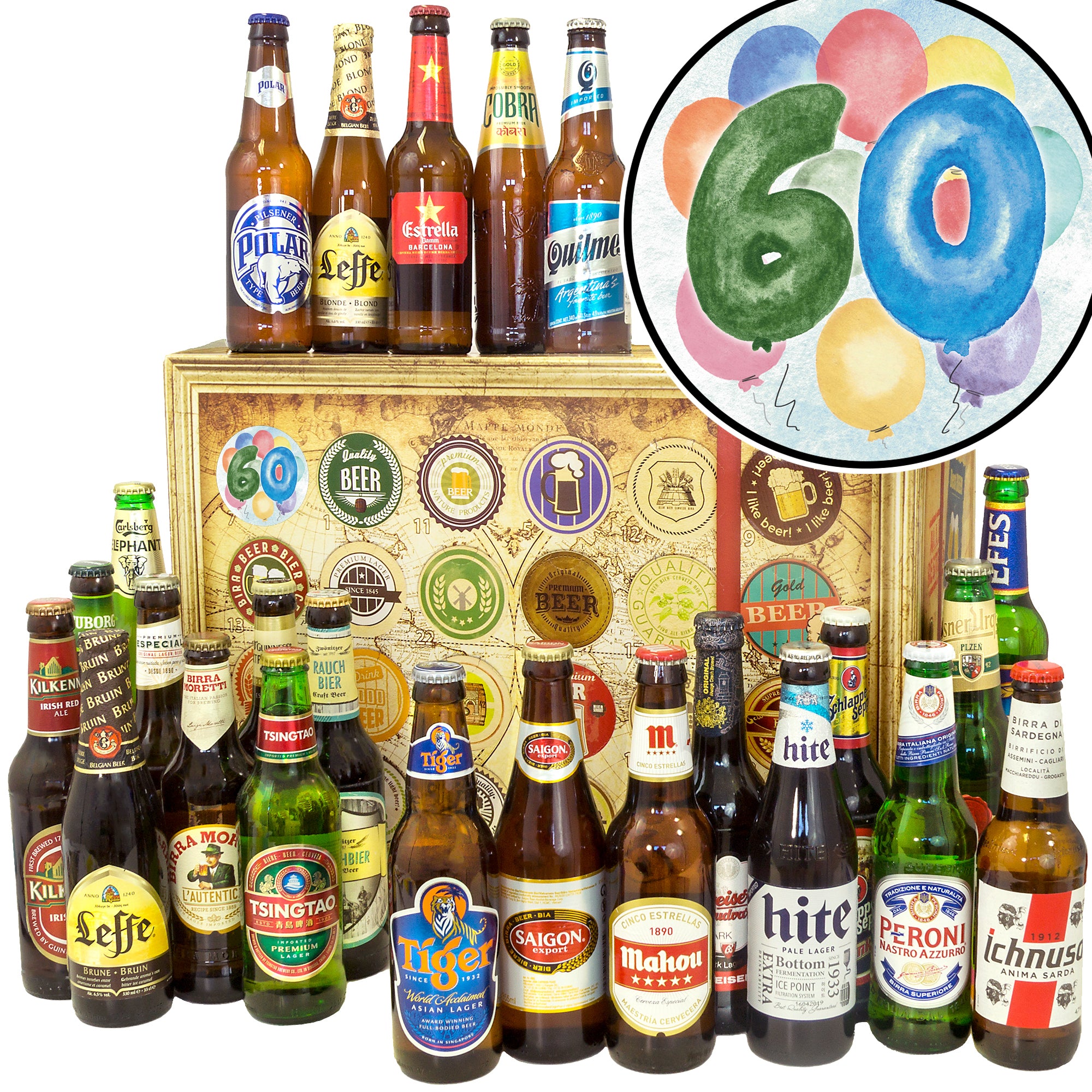 Feiern Sie den 60. Geburtstag mit unserem internationalen Bier Probierpaket! Entdecken Sie 24 Biere aus vielen Ländern und stoßen Sie auf das Leben an. Perfekt als Geschenk oder für Ihre eigene Feier. Lassen Sie sich von der Vielfalt der Aromen und Geschmäcker überraschen und genießen Sie Ihren sechzigsten Geburtstag auf besondere Weise!