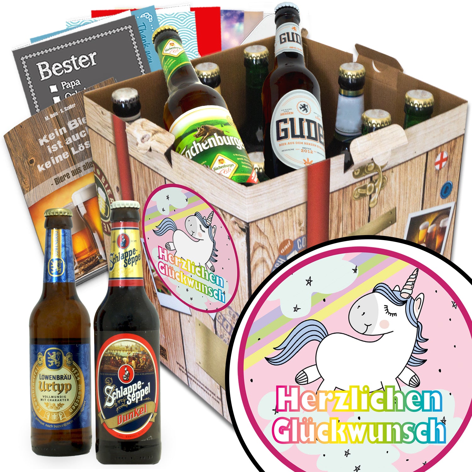 Herzlichen Glückwunsch Einhorn | 9 Flaschen Deutsche Biere | Geschenkkorb