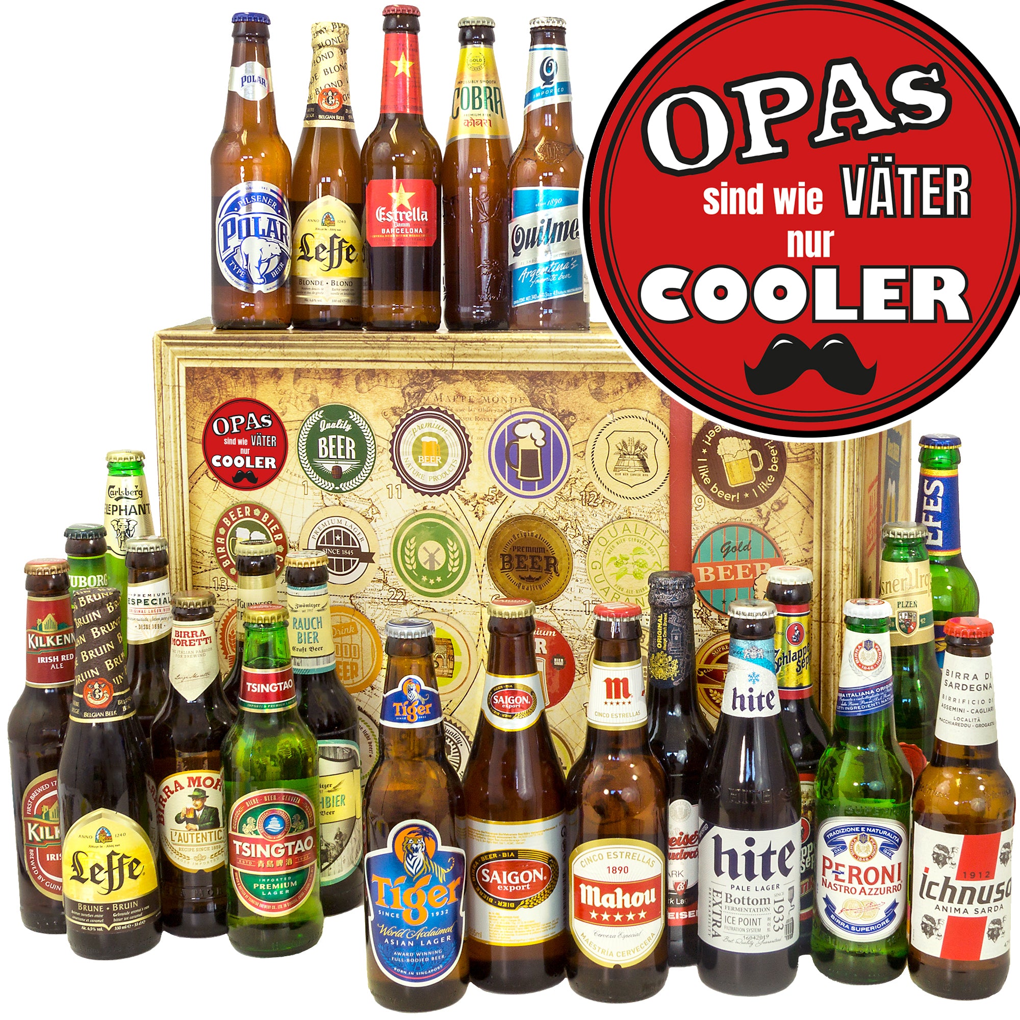 Opas sind wie Väter nur cooler | 24x Bier International | Geschenkkorb