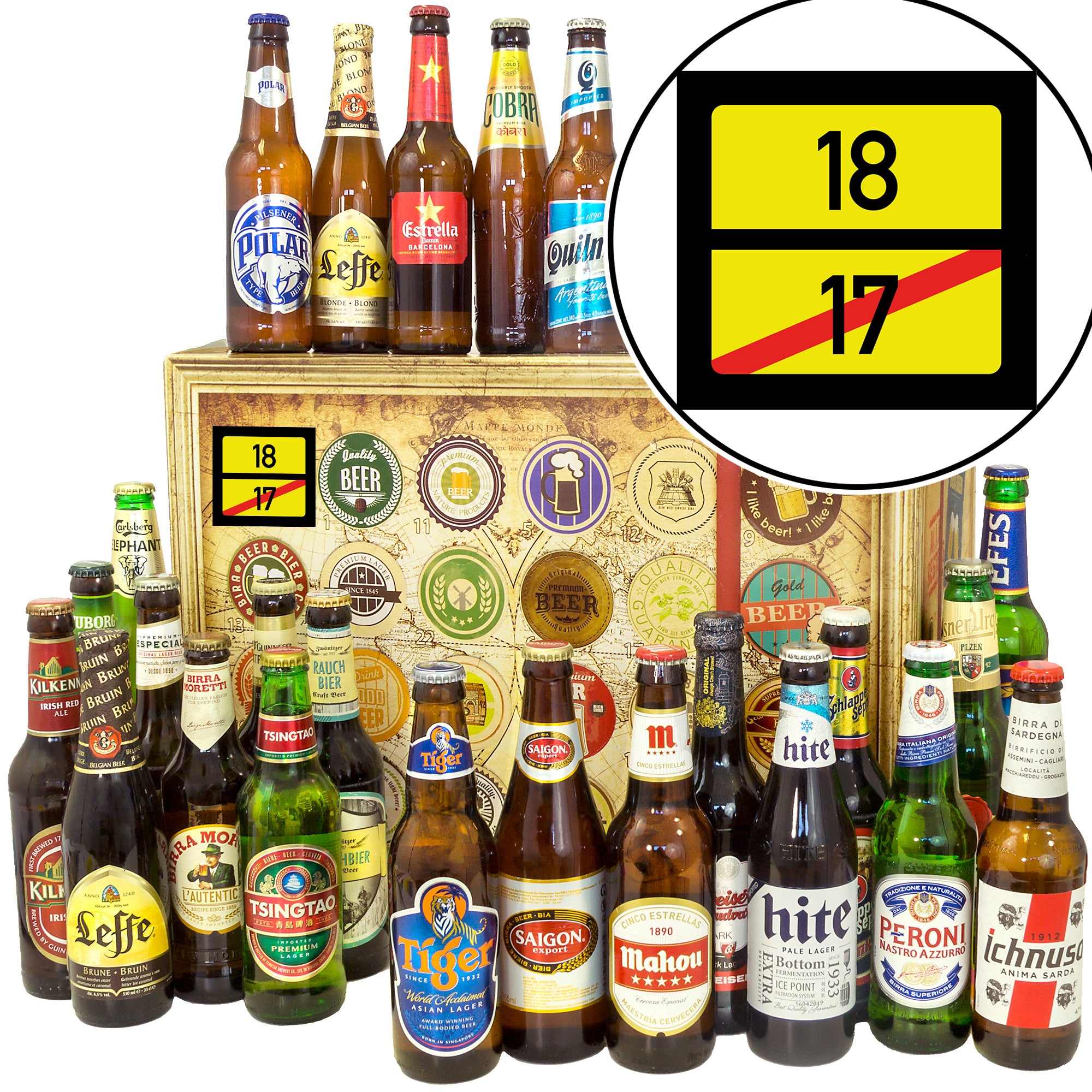 Ortsschild 18 | 24 Spezialitäten Bier Weltreise | Geschenk Box